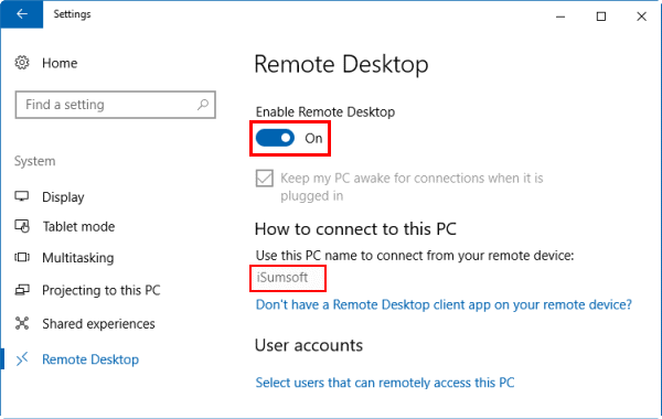 在使用遠程桌面從另一台計算機連接之前,請確保您的用戶帳戶必須具有密碼。如果用戶帳戶沒有密碼,請立即為用戶帳戶創建密碼。