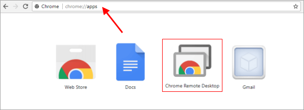 2。類型Chrome://應用程序進入頂部的地址欄,然後按進入查看Chrome遠程桌面應用程序和雙擊以啟動它。