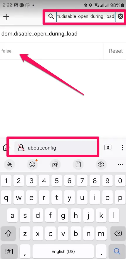 - 在 Firefox 上(僅適用於 Beta 版和 Nightly 版本):輸入“about:config”,然後點擊“Go”。在右上角的搜索欄中,鍵入“dom.disable_open_during_load”,並確保該設置設置為 false。