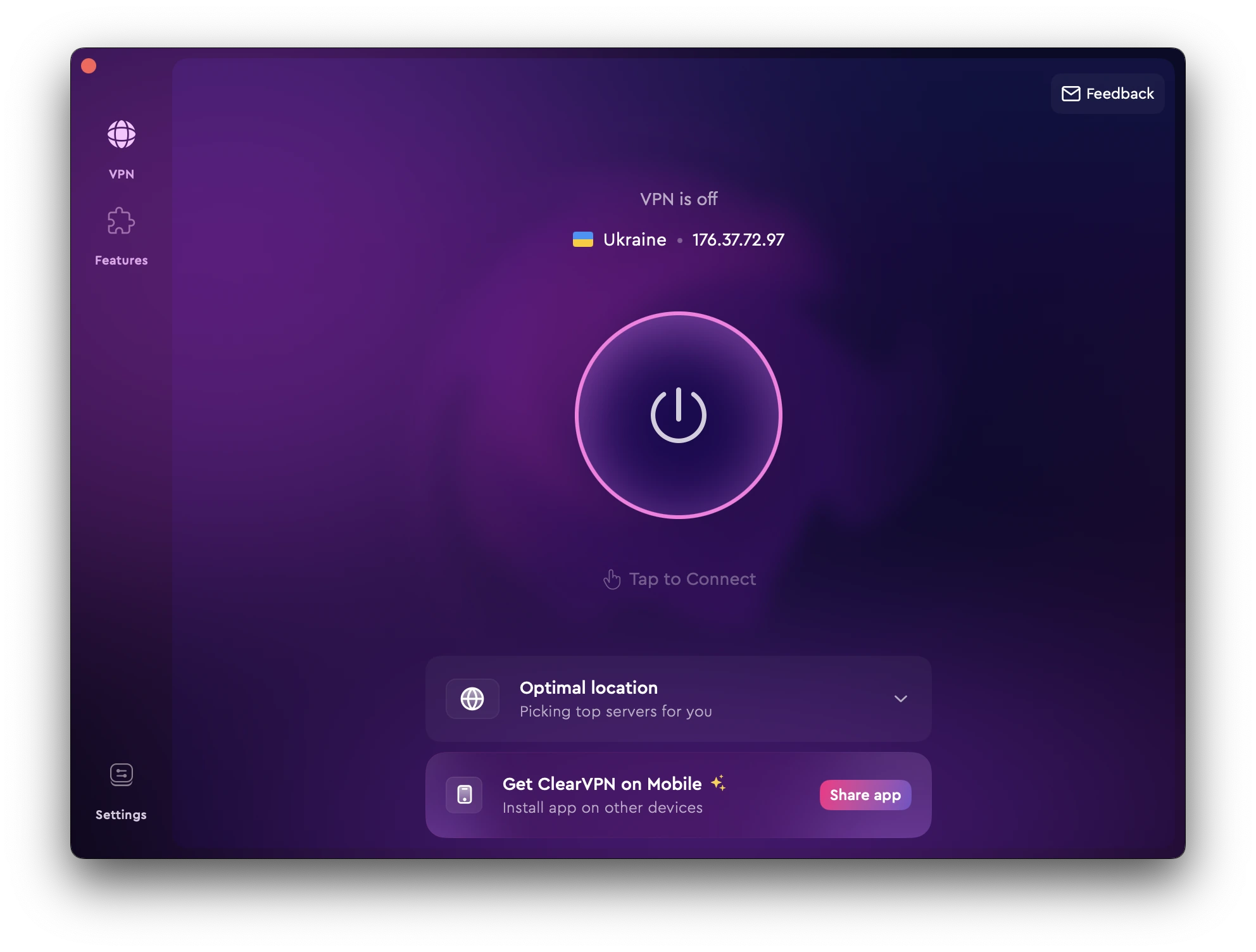 - 假設您已經登錄並查看ClearVPN儀表板,那麼下一步是點擊/單擊“最佳位置”。