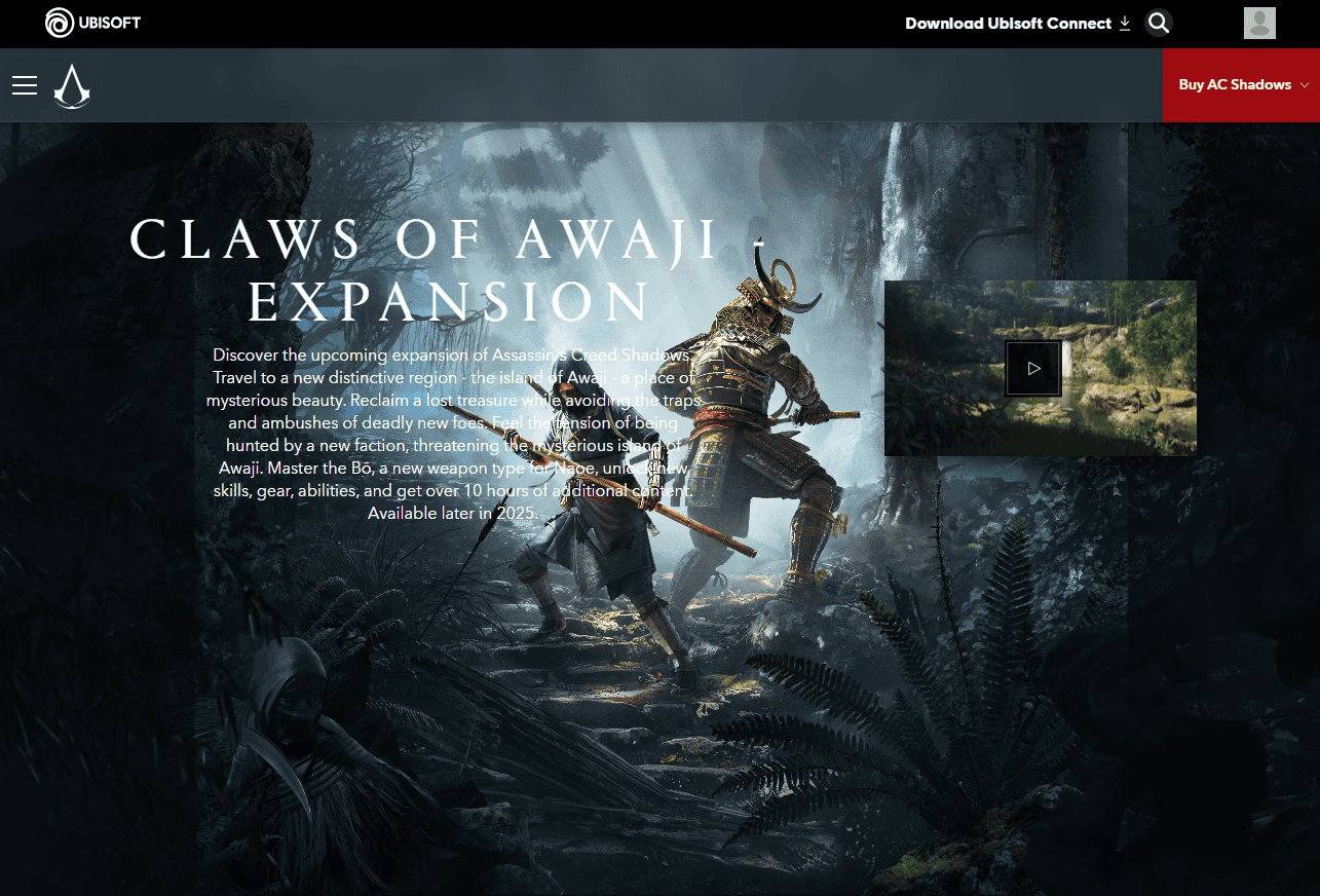 育碧正在為發布後內容的大膽一年做準備刺客信條暗影,其核心在於備受期待的《淡路之爪》擴張。這個主要 DLC 將於 2025 年晚些時候發布標誌著基礎遊戲結束後的首次大規模敘事延續,它有望以令人興奮的新方式深化直江和彌助的雙主角故事。