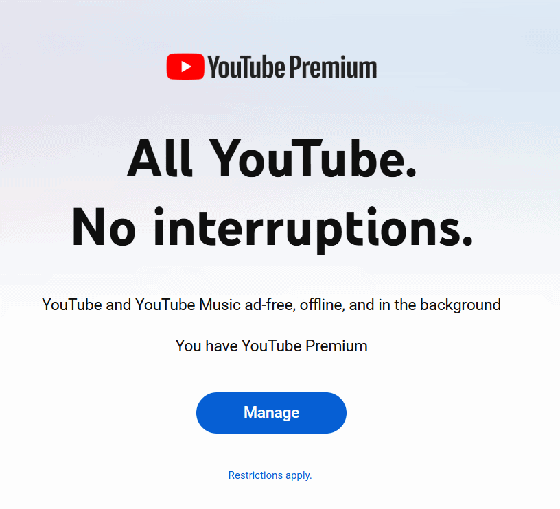 - 成本:YouTube Premium 費用為每月 13.99 美元。它還包括無廣告觀看和後台播放。