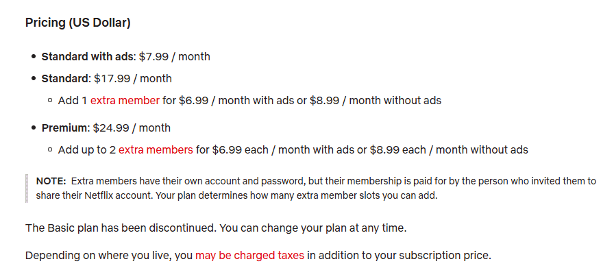 自從開始流媒體電影和電視節目以來,Netflix 已多次調整價格。該公司經常提高價格來支付新節目和電影的費用。Netflix最新一次提價是在2025年1月21日宣布的,當時它提高了所有計劃的成本:
