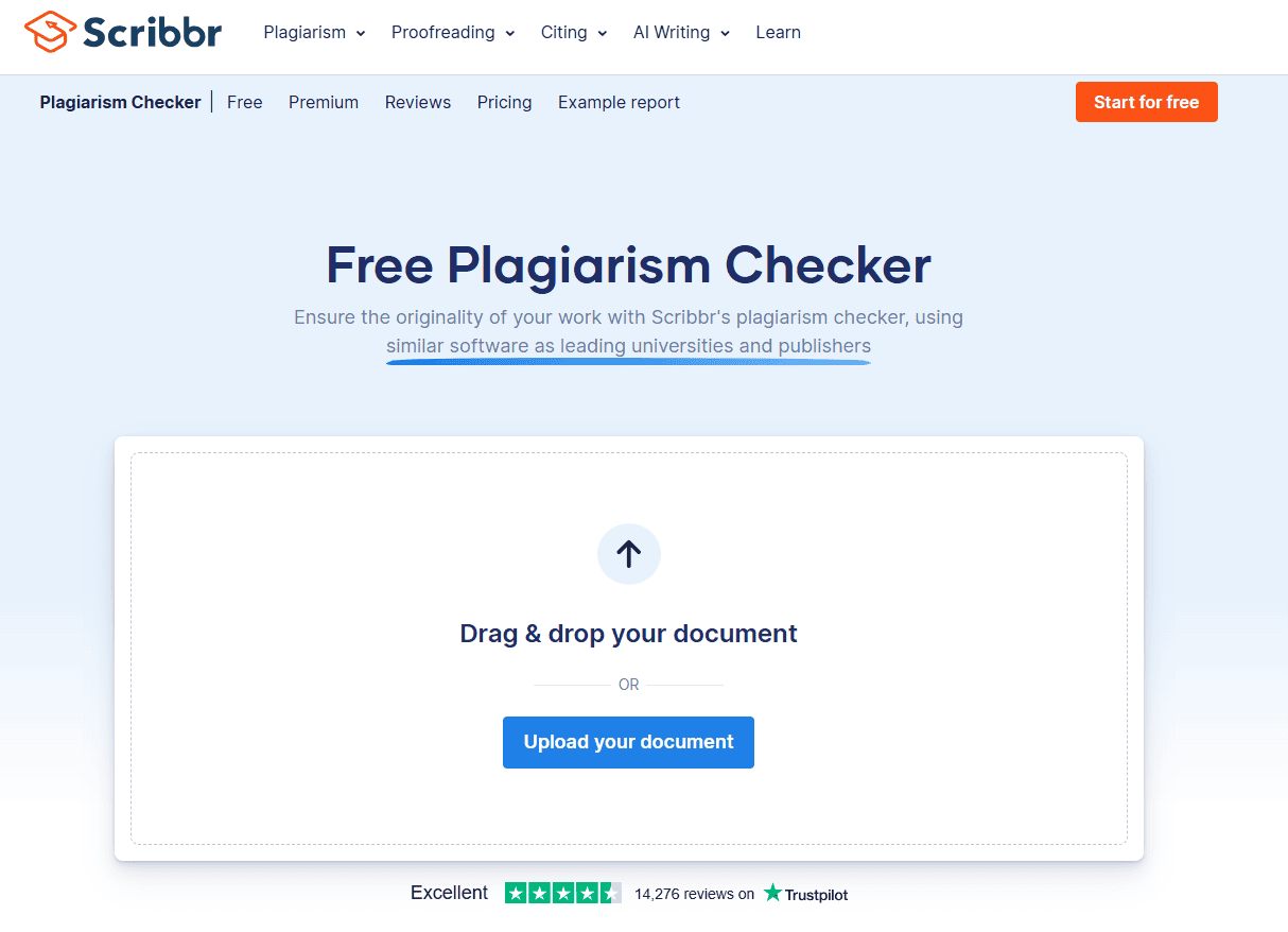 Scribbr 提供免費的抄襲檢查器,可將文本與龐大的數據庫進行比較。該工具可掃描 6000 萬份出版物和 910 億個網頁的文字。